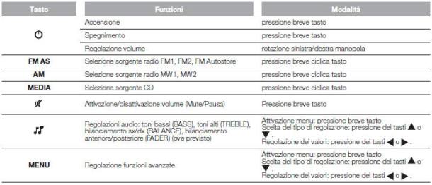 L’autoradio è dotato delle seguenti funzioni: